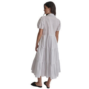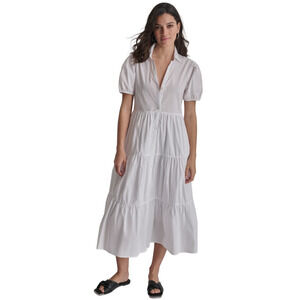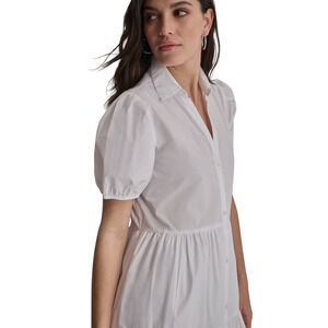 DKNY Women Poplin Dress with Puff Sleeve White Size M