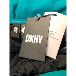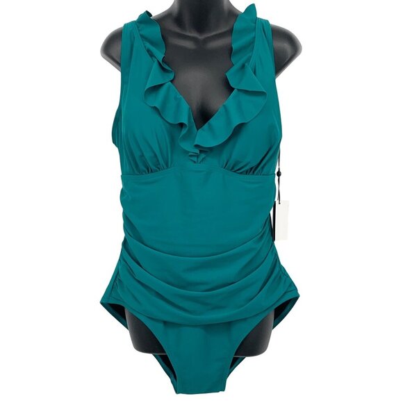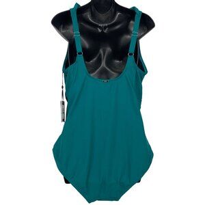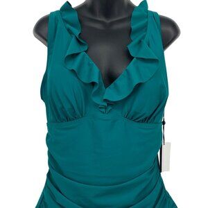 DKNY Women Ruffle Teal Swimsuit Size 16 One Piece Compression UPF SPF 50 New