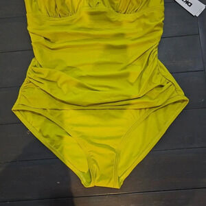 DKNY Women Bright Yellow Ruffle Detail underwire One Piece Swimsuit Size Medium