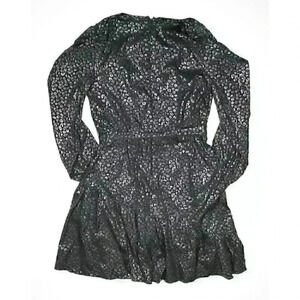 DKNY Women's 14 Long Sleeve V-Neck Ruffle Printed Fit and Flare Dress NWT $134
