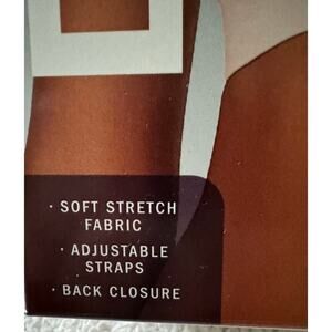 Seamless with adjustable shoulder straps and back closure. Box size chart size: 38DD to 40D cup. Nylon/Spandex. MSRP $32
