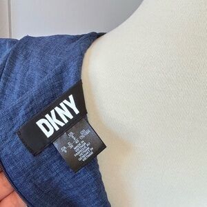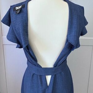 DKNY Womens 8 Midi Dress Blue Pleated V-Neckline Flutter Sleeves Office Party