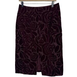 DKNY Women's 8 Rosette Floral Wool Pencil Skirt Dark Cherry Red Maroon Artsy