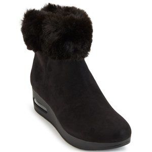 DKNY Women's Abri Booties Sz 7 Wedge Faux Fur Ankle Boot Black B4HP