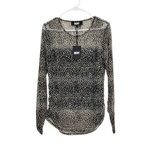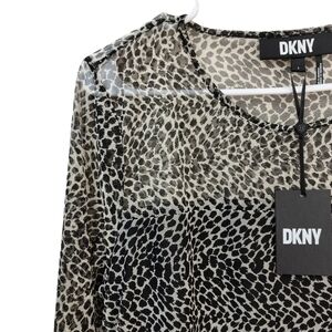DKNY Women's Animal Printed Mesh Long Sleeve Top Y2K Style - L