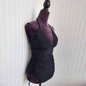 DKNY Women's BLACK Adjustable Side Halter One-Piece Swimsuit US 12