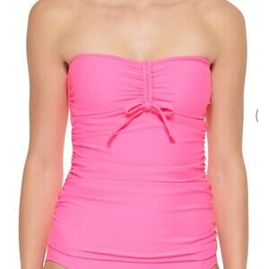 DKNY Women's Bandeau Bow Tankini Top Swimsuit Pink Size Small NWT