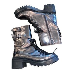 DKNY Womens Bart Metallic Gunmetal Double Buckle Strap Back Pull Tab Boot Size 6
