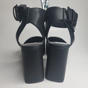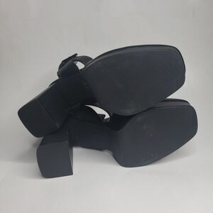 Add a touch of classic and 90s style to your wardrobe with these DKNY Women's Black Ankle-Strap Platform Pumps Briella Sz 8M. These ultra-high block heel pumps are perfect for any occasion and feature a solid pattern with a square toe shape. The buckle closure and ankle strap with adjustable strap accent provide a stylish look and secure fit.