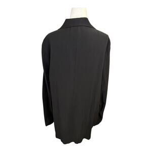 Keywords: DKNY, black blazer, women's fashion, long sleeve, one-button, professional attire, evening wear, size XL, rayon blend, two front pockets, dry clean only, women's clothing, elegant suit, new condition.