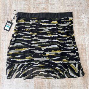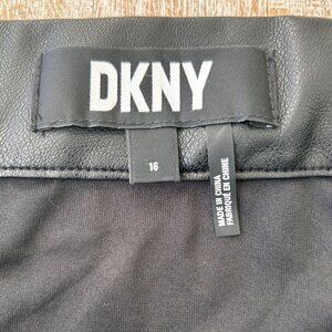 DKNY Women's Black Faux-Leather Elastic Waist Ruffled Overlay Skirt Size 16 NWT