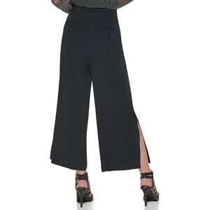 DKNY Womens Black High Rise Pleated Wide Leg Cropped Pants Slit Size 12