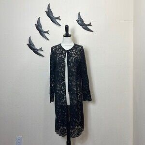 DKNY Women's Black Lace Tie-Neck Duster Jacket Swim Cover Up - M/L - Versatile