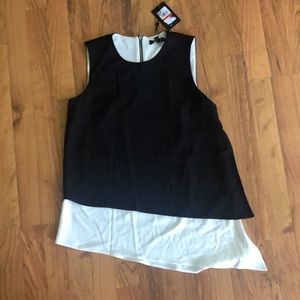 DKNY Womens Black Layered-look Asymmetrical Blouse Top Size: XS