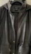 Chic black leather jacket by DKNY. Features a hood and sleek design. Ideal for versatile styling.