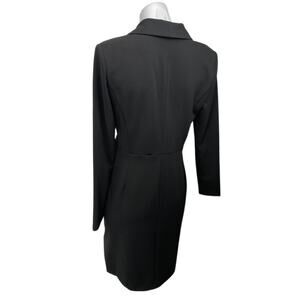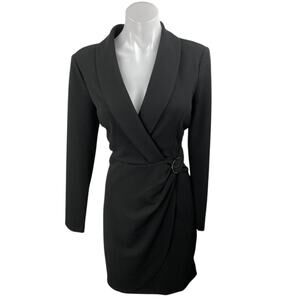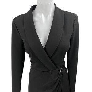 DKNY Women's Black Long Sleeve Collared V-Neck Sheath Wrap Blazer Dress Size 4