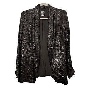 sequined, DKNY, women's jacket, shawl-collar, open-front design, stylish, evening wear, glamorous, versatile, lightweight, casual chic, party-ready, christmas, holiday, party, wedding, glam, bling
