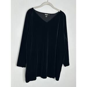 DKNY Women’s Black V Neck Long Sleeve Velvet Blouse Top Plus Size 2X