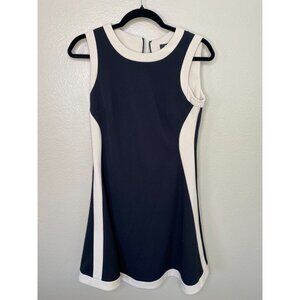 DKNY Womens Black tan Dress 4 polyester Sleeveless midi dress zipper business