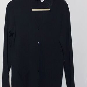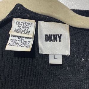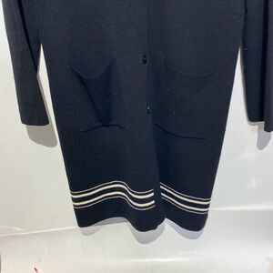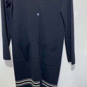 DKNY Women's Black White Wool Blend Button Front Longline Cardigan Size Large