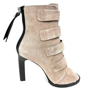 * NEW * with box. DKNY Women's 'Blake' Oiled Suede Taupe Peep-toe High Heel Strap Boots. Size 6
