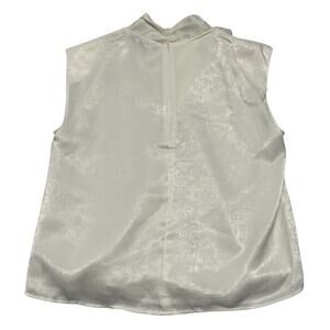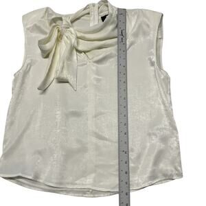 DKNY Women's Blouse Small Satin High Neck Bow Shoulder-Pad Top