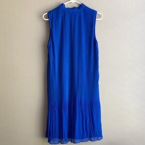 DKNY Women's Blue Sleeveless Tie Neck Pleated Short Mini Dress size 6