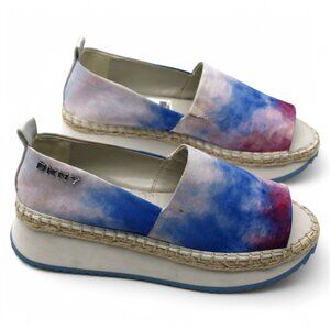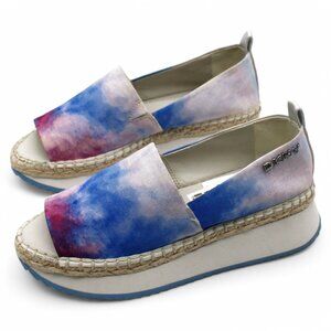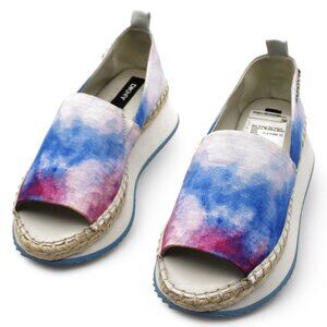 DKNY Womens Blue Tie Dye Treaded Orza Open Toe Wedge Slip on Espadrille Shoes