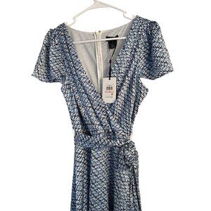DKNY Womens Blue Wrap Dress Size 10 NWT Flutter Sleeve $129 8974