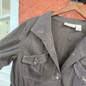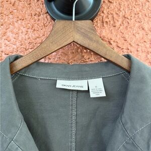 DKNY Womens Cargo Khaki Trench Jacket Longsleeve Utility Button Coat Size Medium
