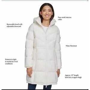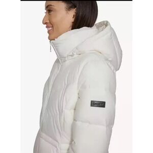 DKNY Women's Chevron Walker Pearl Long Puffer 2XL Zip Up Long Sleeve Coat Jacket