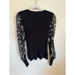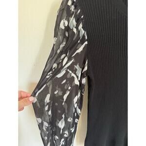 DKNY Women's Chiffon-Sleeve V-Neck Sweater Ribbed Black Size Medium Floral
