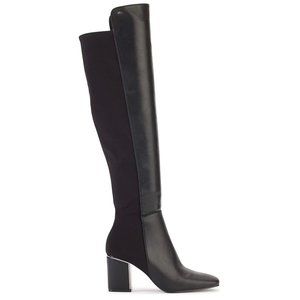 Dress up skinny jeans and accent tailored skirts in the sleek stylings of the Cilli knee-high boots from DKNY.