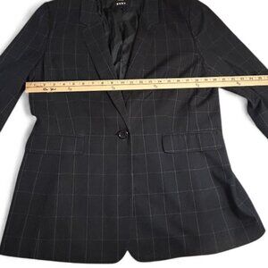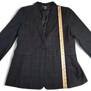 DKNY Women's Classic Vented Single Button Windowpane Lined Blazer Jacket - Size 16 Black