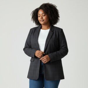 DKNY blazer, windowpane blazer, classic black blazer, women’s workwear, career jacket, business casual, office blazer, professional outfit, tailored blazer, plus size blazer,