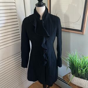 DKNY Womens Coat Wool Ruffle Front Wool Blend Knee Length Winter Whimsigoth Career, Office, Travel, Lined, Pockets