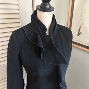 DKNY Womens Coat Wool Ruffle Front Wool Blend Knee Length Winter Whimsigoth | 2P