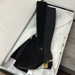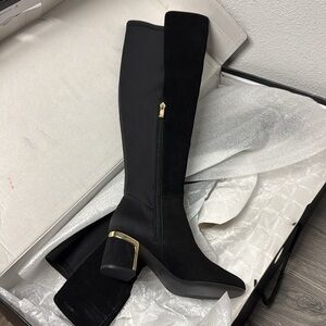 Metallic accents bring shine to the stylish block-heel design of these sensational Cora dress boots from DKNY.