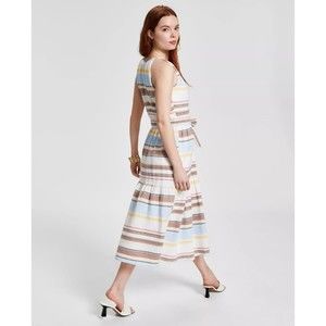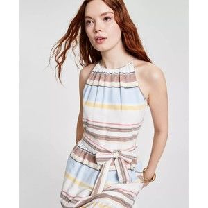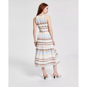 DKNY Women’s Cotton Halter-Neck Midi Belt Dress Ivory Multicolor Size 4 NWT $139