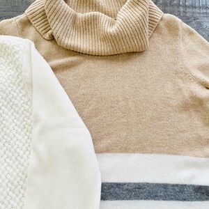 DKNY Women's Cowl & Turtleneck Sweater Set of 2 - Cream and Tan Size L