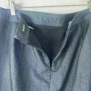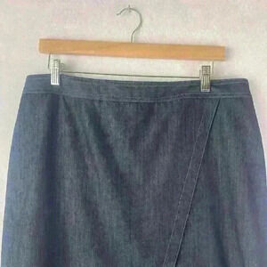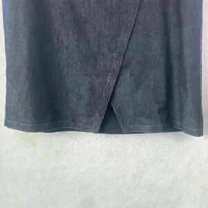 DKNY Women's Dark Denim Wrap Above Knee Front Slit Zipper Back Skirt Size 14