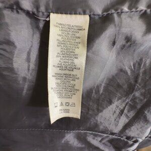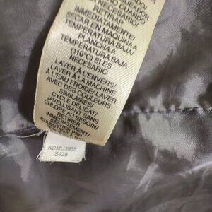 Stay cozy and stylish in this DKNY women’s puffer jacket, size Small. The jacket comes in a sleek gray metallic tone with a quilted design, front zipper closure, and snap-button detailing at the collar. It features a warm down and feather fill (50% polyester, 30% down, 20% waterfowl feathers), making it perfect for cold winter days. The lightweight yet insulating construction ensures comfort without bulk.