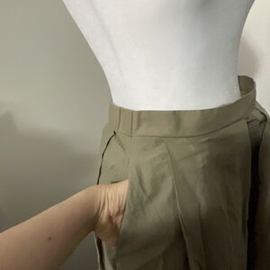 DKNY Womens Green Pleated Cotton Skirt With Side Pockets Size Small