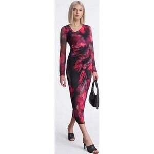 DKNY Womens Illusion Long-Sleeve Crushed Charmeuse Slip Dress 6 Black - NWT