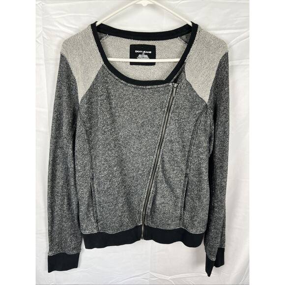 DKNY Womens Large Jacket Gray Long Sleeve Colorblock Raw Slanted Zipper