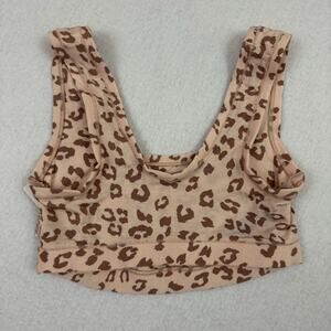 DKNY leopard print bralette crop top lounge bra tank small S sleeveless scoop neck blush brown animal print NWT