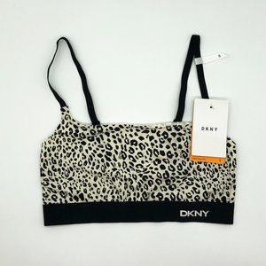 DKNY Womens Leopard Print Scoop Neck Everyday Bralette Bra Black Small