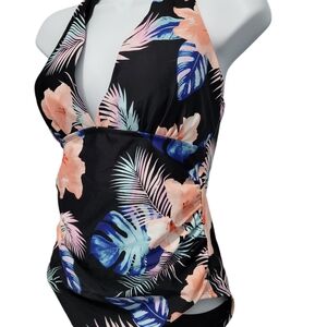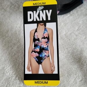 New DKNY Womens M One Piece Tummy Control Halter Neckline Swimsuit UPF Protect