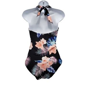 DKNY Womens M One Piece Tummy Control Halter Neckline Swimsuit UPF P…