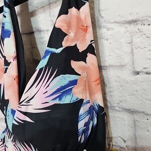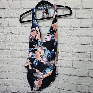 DKNY Women's Medium One Piece Tummy Control Bathing Suit Black Floral UPF NWT